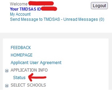 - Check your [Status] page in the TMDSAS Application Portal. Click here to see how!